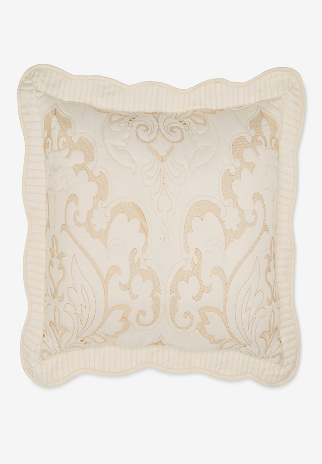 Our popular Amelia sham features meticulous allover embroidery in a damask motif and a quilted scalloped border for extra style. Made with superior softness, you'll love it in the guest and master bedroom.