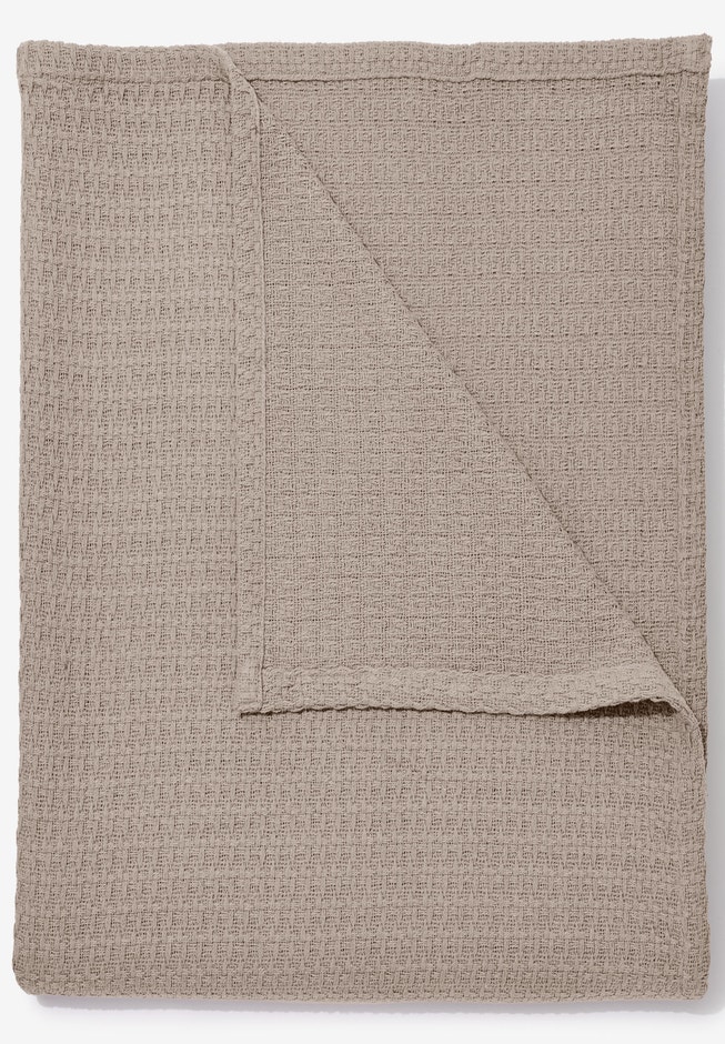 Treat yourself to the ultimate comfort of a giant cozy blanket! This oversized version of our popular 100% cotton basketweave blanket gives you ultra-luxe texture, superior quality and softness that drapes all the way to the floor on beds and keeps the whole family warm on movie nights. Delicately woven for all-season comfort.