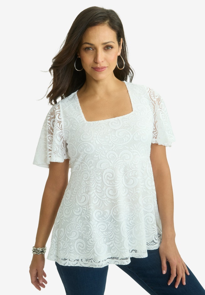 Square Neck Lace Peplum Tunic