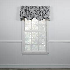 A chrome woven floral valance with a scalloped edge, featuring a 3" rod pocket and 2" header.